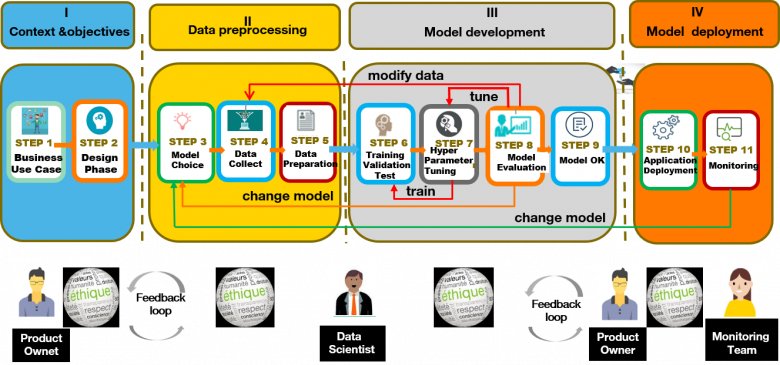 During the model’s development phase, the data scientist integrates the ethical requirements into his code according to these priorities by reducing the biases likely to cause unequal treatment and by providing any necessary explanations for the understanding of either the model itself or the decisions made — the approval or denial of a bank loan, for instance.