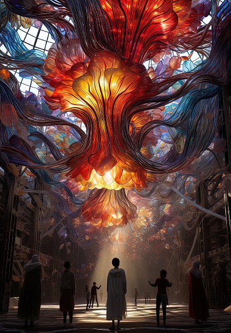 Featured picture: one of Joshua Vermillion’s digital artworks featuring jellyfish inspired light fixtures.