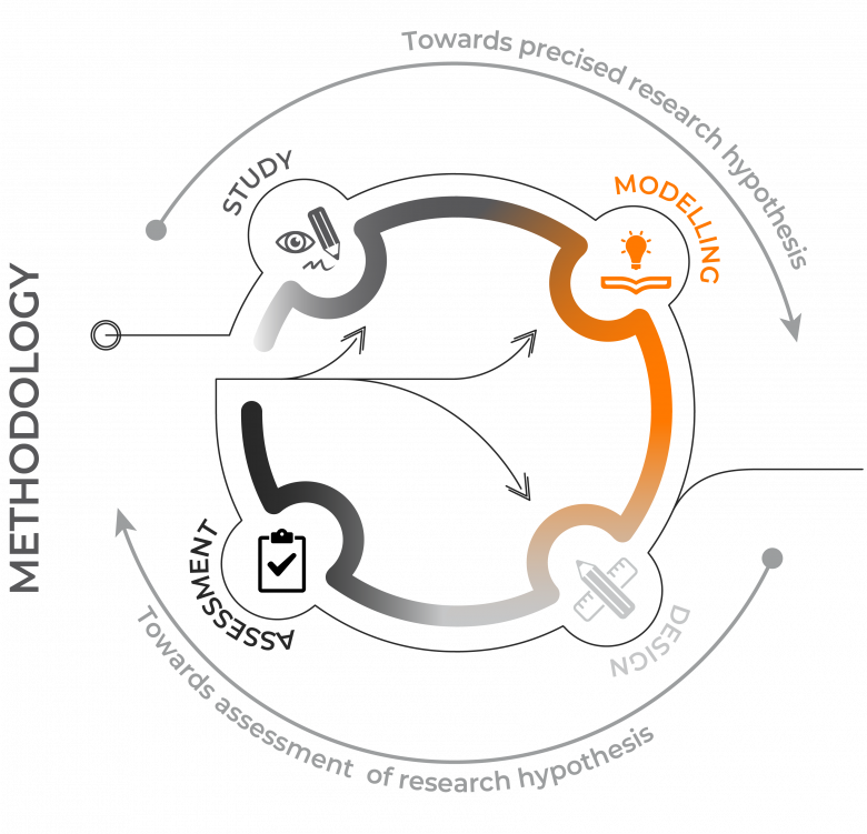 A methodology [13] has been developed to address this question. It aims to provide the researcher-designer with a framework that interweaves practical and reflective phases. This research approach consists of four phases clearly inspired by User-Centred Design (UCD), the standard for iterative design processes [14]. However, unlike UCD, the proposed approach does not only aim to create a product or service; it is also intended to increase understanding of the impact of a behavioural object on the ecology of the user, and the findings to be drawn from this.
