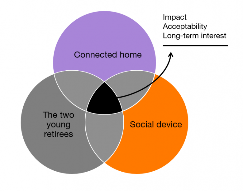 The work undertaken falls within the fields of ergonomics and design. These disciplines focus on human beings and, in practice, are often anchored to a field of study. So, in order to study behavioural objects in the context of the connected home and to narrow the field of study, new retirees were chosen as the target; “new” here meaning recently retired.