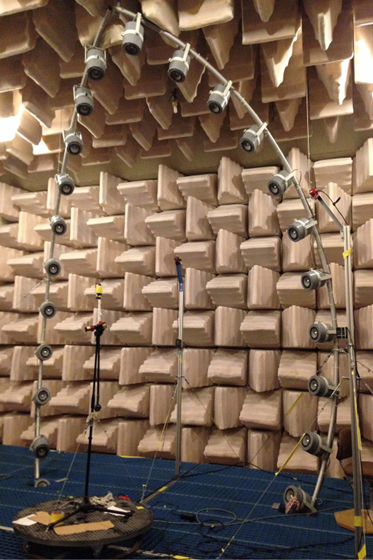 Figure 2 : Système de mesure de fonctions de transfert binaurales dans la chambre sourde sur le site d’Orange à Lannion