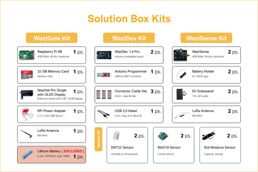 Le projet a aussi développé la Solution Box, un ensemble de technologies matérielles et logicielles qui facilite le développement de solutions IoT. C’est un package « prêt à l’emploi » de soutien technique, de formation et d’accompagnement commercial pour les entrepreneurs et les startups. La boîte est constituée de trois éléments essentiels (c’est-à-dire des kits matériels et logiciels, des supports de formation et de coaching, ainsi que des outils et modèles de développement commercial) nécessaires aux entrepreneurs et aux startups pour le prototypage rapide et la création de nouveaux services.